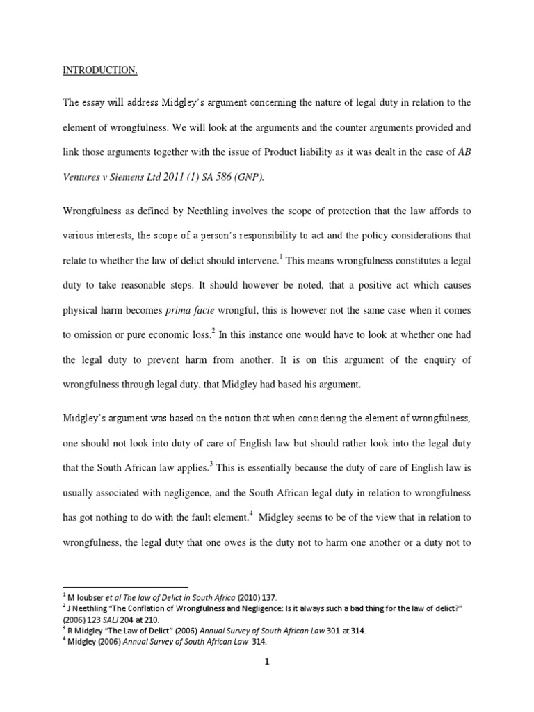 And for the protection of the actors or a third partys interest which is threatened or attacked by the. The South African law of delict engages primarily with the circumstances in which one person can claim compensation from another for harm that has been suffered 1 JC Van der Walt and Rob Midgley define a delict in general terms as a civil wrong and more narrowly as wrongful and blameworthy conduct which causes harm to a person. If the content The Law Of Delict In South Africa not Found or Blank you must.